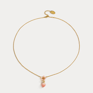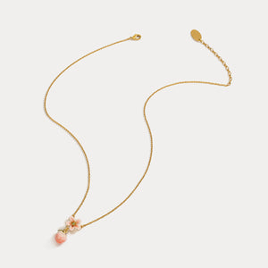 This necklace, a blend of a gentle peach blossom and peach charm on a golden chain, captures the essence of spring's beauty. It's an ideal accessory for those who cherish the subtle elegance of nature.