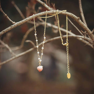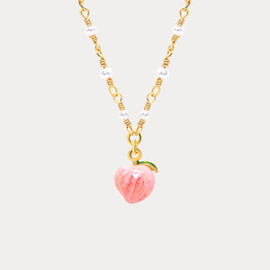 Discover the allure of our peach pearlescent necklace, crafted from premium gold on brass, enamel, and adorned with exquisite freshwater pearls. This necklace gracefully embellishes the neckline, radiating a classic charm. An ideal present for various occasions, it suits both significant events and daily fashion. Elevate your wardrobe by integrating this magnificent piece, infusing your style with a hint of natural elegance.