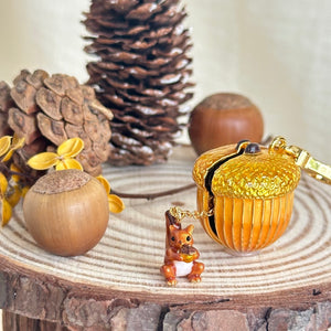 Tuck away tiny treasures with our Acorn Squirrel Locket Pendant, a whimsical blend of woodland charm and playful elegance. Crafted in rich golden tones with intricate enamel detailing, this locket opens to reveal a hidden compartment inside the acorn. A tiny squirrel dangles sweetly below, adding a delightful touch of character. Perfect for nature lovers or anyone who adores a little magic in their jewelry, it’s a keepsake designed to spark smiles and stories.