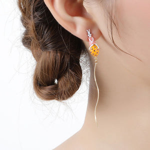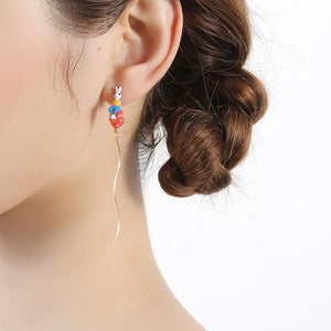 The "Rabbit Earrings" showcase an imaginative design, featuring delicate rabbits sitting atop colorful, whimsical shapes. These earrings add a touch of playful elegance to any outfit, making them perfect for those who love unique and quirky accessories. The extended, curved design creates a sense of movement, bringing the playful rabbit motif to life.