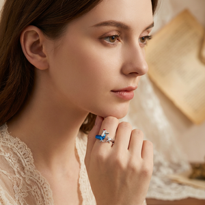 The Christmas Dachshund Ring brings festive charm straight to your fingertips. Crafted in gleaming sterling silver, it features an adorable dachshund wrapped in a cosy blue sweater and topped with a tiny red Santa hat. The open band design, curved into the dog’s playful head and tail, adds a fun, whimsical touch while offering a comfortable fit.