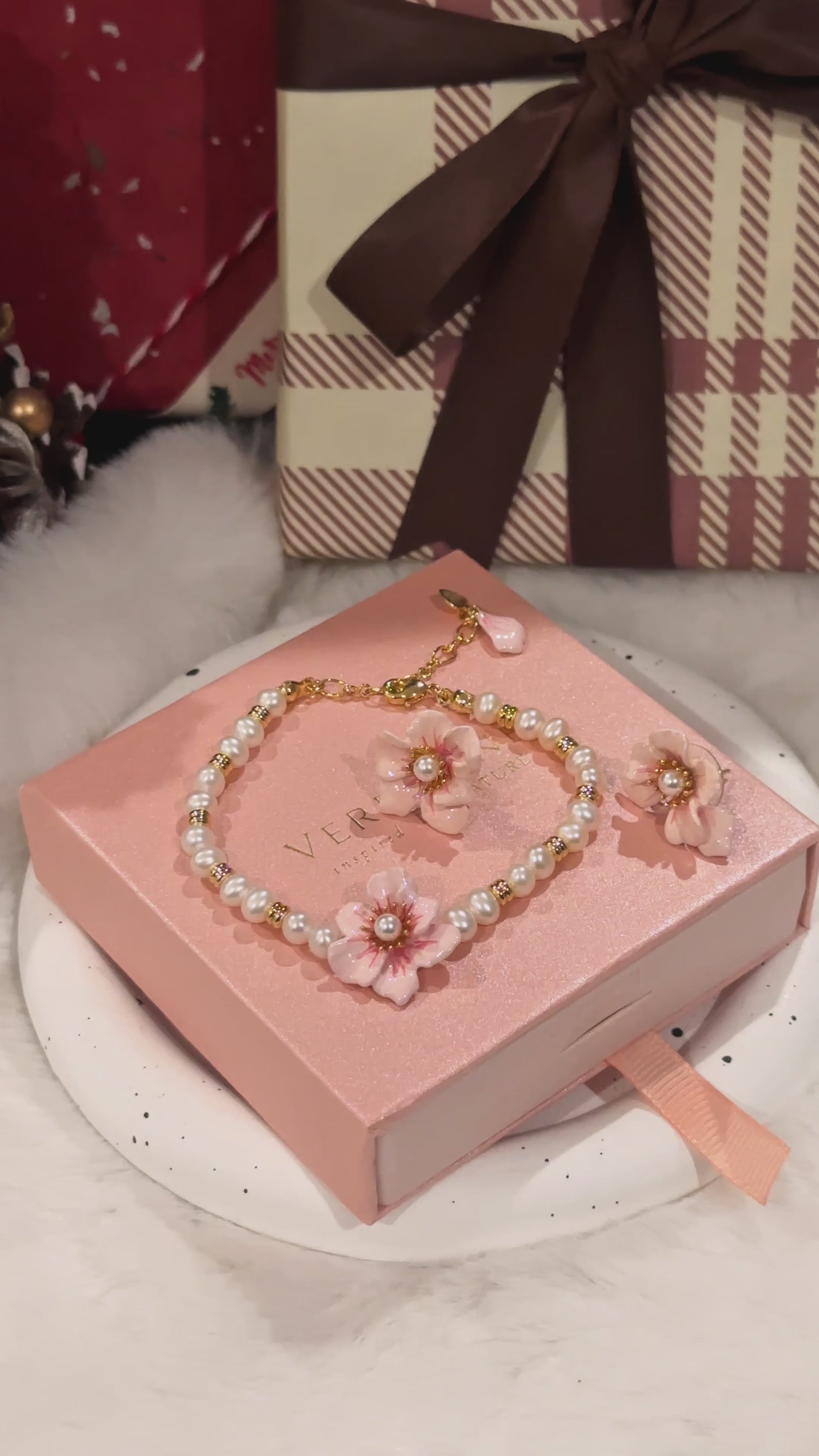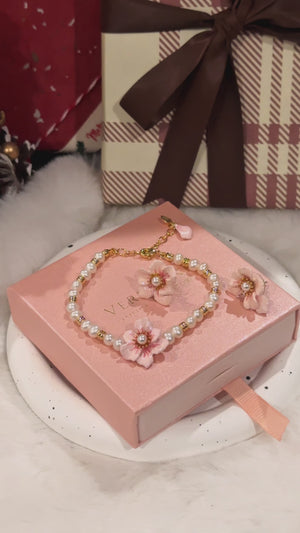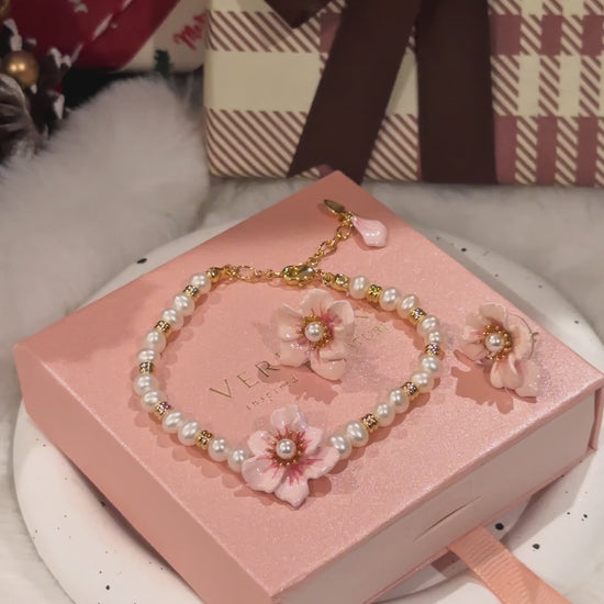 Graceful and feminine, the Sakura Pearl Bracelet combines timeless elegance with delicate floral beauty. Crafted with lustrous freshwater pearls, accented by golden beads, it is highlighted by a hand-painted sakura flower set with a pearl centre. The adjustable gold-tone chain ensures a perfect fit, while a dainty pink petal charm adds a finishing touch. A perfect piece for spring, weddings, or adding subtle romance to everyday style.
