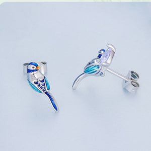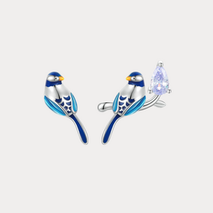 The Blue Bird Earrings capture the delicate charm of nature with a pair of finely detailed bluebirds perched gracefully in silver-tone elegance. Accented with vibrant enamel wings and a shimmering teardrop crystal, these earrings bring a playful yet refined touch to your everyday look. Lightweight and full of personality, they're perfect for bird lovers and free spirits alike.