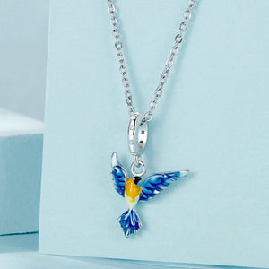 The Blue Bird Pendant Necklace features a beautifully hand-painted bird in flight, with vibrant shades of cobalt blue and golden yellow. Suspended from a crystal-accented silver bail, this charming piece captures the spirit of the sky in motion. Light, graceful, and full of life, it’s a perfect everyday reminder to stay lighthearted and free.