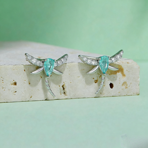 These elegant Dragonfly Earrings are crafted in sterling silver, featuring sparkling crystal-studded wings and a vivid green gemstone body. Symbolising transformation and grace, they add a touch of brilliance and nature-inspired beauty to your style. Perfect for both everyday wear and special occasions.