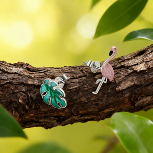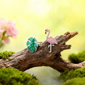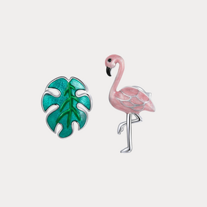 Add a playful twist to your look with the Flamingo Mismatched Earrings. Crafted from 925 sterling silver, this charming pair features a delicate pink flamingo and a vibrant green monstera leaf. Stylish and unique, they capture the carefree spirit of summer and bring a touch of tropical elegance to any outfit.