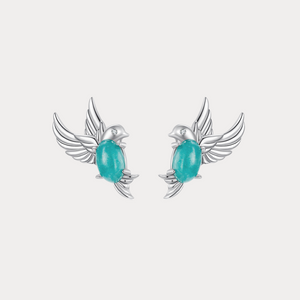 Delicately crafted from 925 sterling silver, the Hummingbird Earrings feature graceful winged birds with vibrant turquoise stone bodies. Sparkling accents highlight their elegance, symbolising freedom, joy, and natural beauty. A striking pair to elevate both everyday wear and special occasions.