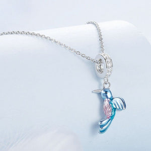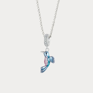 The Kingfisher Pendant Necklace features a beautifully hand-painted bird in flight, adorned in iridescent shades of blue and soft rose-pink. Suspended from a sparkling crystal-studded bail, this graceful pendant captures the spirit of serenity, freedom, and focus. Crafted with fine detail, it brings a touch of nature’s brilliance to your everyday style.