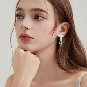 Unique and meaningful, the Polar Bear Tassel Earrings feature hand-painted bears standing on icy blue enamel platforms with cascading crystal tassels that shimmer like melting drops of ice. Crafted in sterling silver, they symbolise resilience, beauty, and a gentle reminder of nature’s fragility. A statement pair that combines elegance with storytelling.