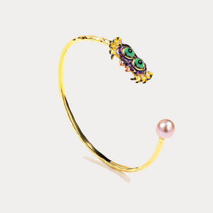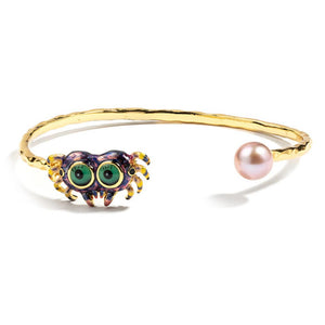 This Spider Bracelet is a striking and unconventional accessory, featuring a detailed tarantula design on one end and a delicate pearl on the other. The open-ended bangle combines the eerie allure of the spider with the elegance of the pearl, creating a bold statement piece that is sure to capture attention.