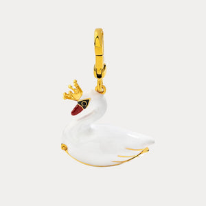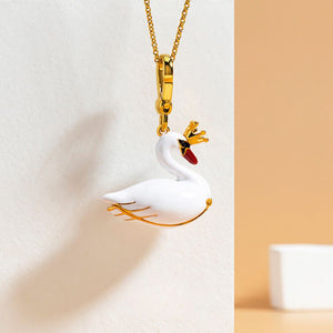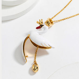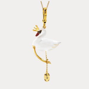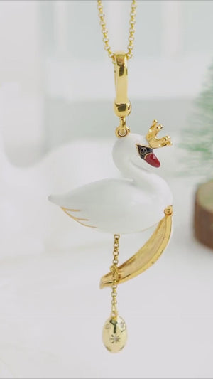 This exquisite piece features a majestic swan adorned with a delicate crown, symbolizing grace and nobility. Crafted from high-quality enamel and gold-plated accents, the pendant opens to reveal a hidden compartment, adding a touch of whimsy and mystery. The swan's poised form and luxurious design make it a standout accessory for any occasion, perfect for those who appreciate timeless beauty and sophisticated charm.