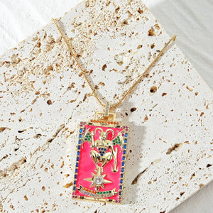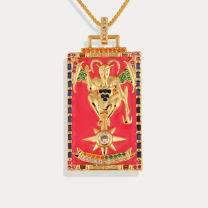 Dare to embrace the shadows with the Tarot Card Necklace - The Devil. A symbol of temptation, power, and raw energy, this striking pendant serves as a reminder to break free from limitations and take control of your destiny.