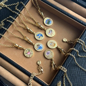 Unlock the magic of the universe with our Tarot Card Pendant Necklace, a celestial piece designed for those who believe in destiny, intuition, and personal empowerment. Each pendant features an intricate, hand-painted tarot-inspired design, framed in radiant gold-tone detailing and adorned with delicate celestial accents.