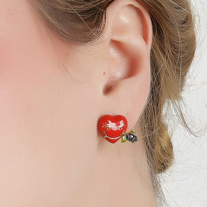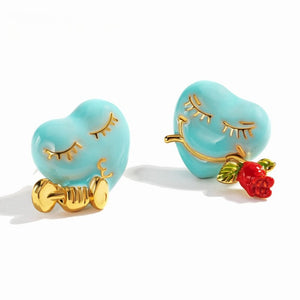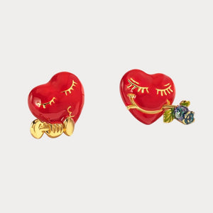 Add a touch of whimsy to your look with the Love Heart Stud Earrings. Featuring vibrant red hearts with playful eyes and a charming rose detail, these earrings exude fun and romance. A perfect accessory for adding personality and a smile to any outfit.