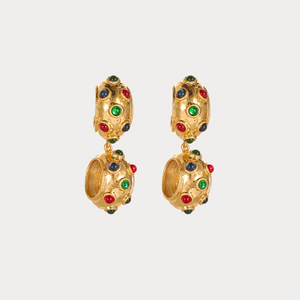 Add a touch of regal flair to your style with these Vintage Dome Hoop Earrings. Featuring a bold, gold-tone dome silhouette adorned with multicoloured gem accents, this pair channels vintage glamour with a modern twist. Perfect for making a statement, these earrings bring a luxurious finish to both casual and elegant looks.