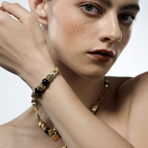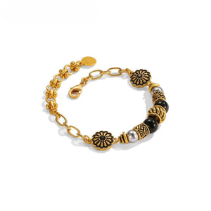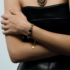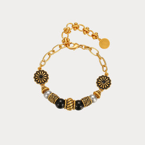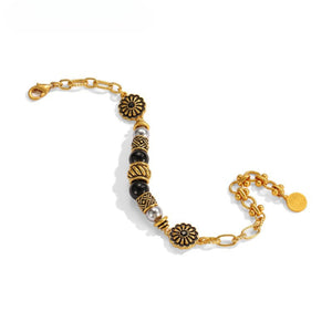 Add a touch of vintage elegance to your wrist with the Vintage Sunflower Radiance Bracelet. Featuring intricate sunflower emblems, bold black and gold beads, and antique-style detailing, this bracelet blends nostalgic charm with statement-making sophistication. Perfect for those who adore timeless beauty with a modern twist.