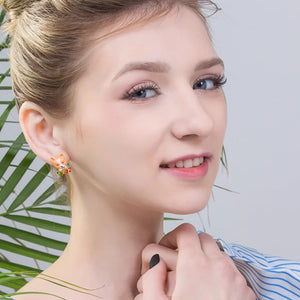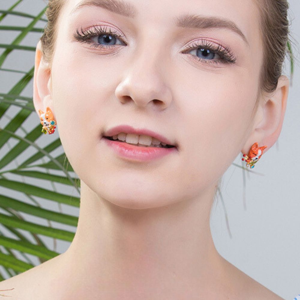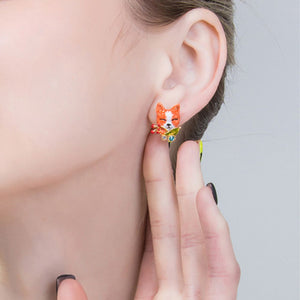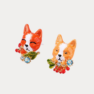 These adorable Cat Earrings feature two whimsical cat faces, each hand-painted with intricate enamel detailing. The playful expressions and vibrant colors bring a touch of charm and personality to your look. Accentuated with sparkling crystals and delicate floral elements, these earrings are perfect for adding a fun and stylish statement to any outfit. .