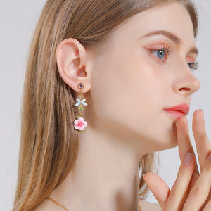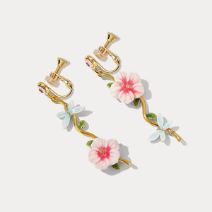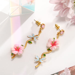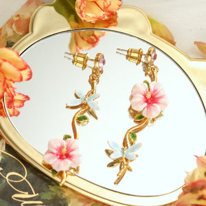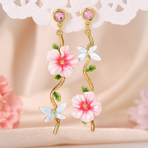 This exquisite piece features enameled white-pink blooms, lush green leaves, and a delicate light blue butterfly, all crafted with meticulous attention to detail. The vivid enamel workmanship brings each element to life, creating a lovely and charming accessory. Perfect for those who appreciate nature-inspired beauty, this hibiscus jewelry is a must-have for adding a touch of grace and sweetness to your style.