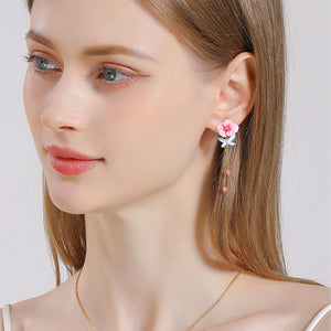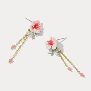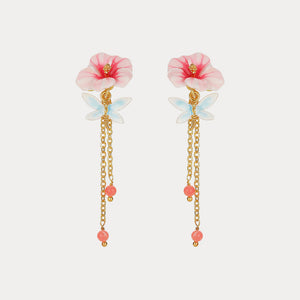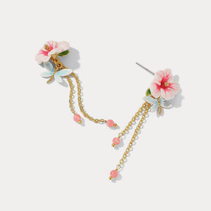 Featuring enameled white-pink blooms, vibrant green leaves, and a delicate light blue butterfly, each piece delights with its beauty and sweetness. The exquisite enamel craftsmanship enhances its vivid details, making it a standout addition to any collection. Perfect for everyday wear, this lovely hibiscus jewelry is a must-have for women who appreciate nature-inspired elegance and refined style.