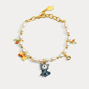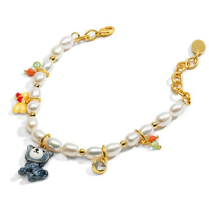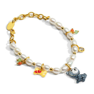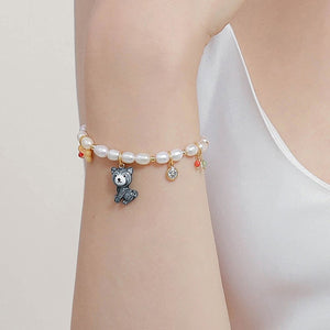 Adorn your wrist with this charming "Husky Puppy Pearl Bracelet," featuring a playful puppy charm paired with colorful accents. The bracelet is delicately crafted with gold-plated elements, combining enamel and a touch of whimsy to create a delightful accessory.