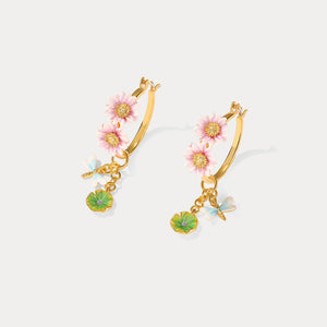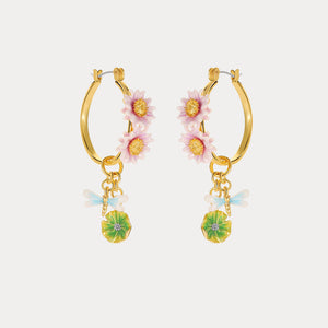 Designed with meticulous attention to detail, these hoops feature an enchanting lotus and dragonfly motif, symbolizing grace and transformation. Handcrafted from exquisite gold, these earrings exude luxury and sophistication. Perfect for elevating any outfit, their delicate yet striking design ensures you make a memorable impression. Embrace the elegance and charm that these beautiful earrings bring to your jewelry collection.