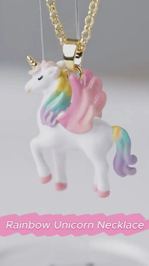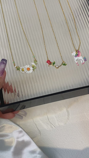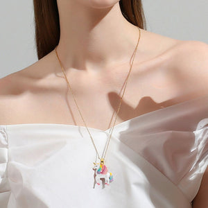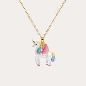 Add a touch of magic to your look with this enchanting Unicorn Necklace. Crafted from high-quality gold-plated brass, this necklace features a beautifully detailed enamel unicorn pendant with a rainbow mane and tail. Its whimsical design captures the essence of fantasy and adds a playful, yet elegant charm to any outfit. Perfect for unicorn lovers and those who believe in a bit of magic, this necklace is a delightful accessory for both everyday wear and special occasions. Embrace the magic with this charming unicorn necklace.